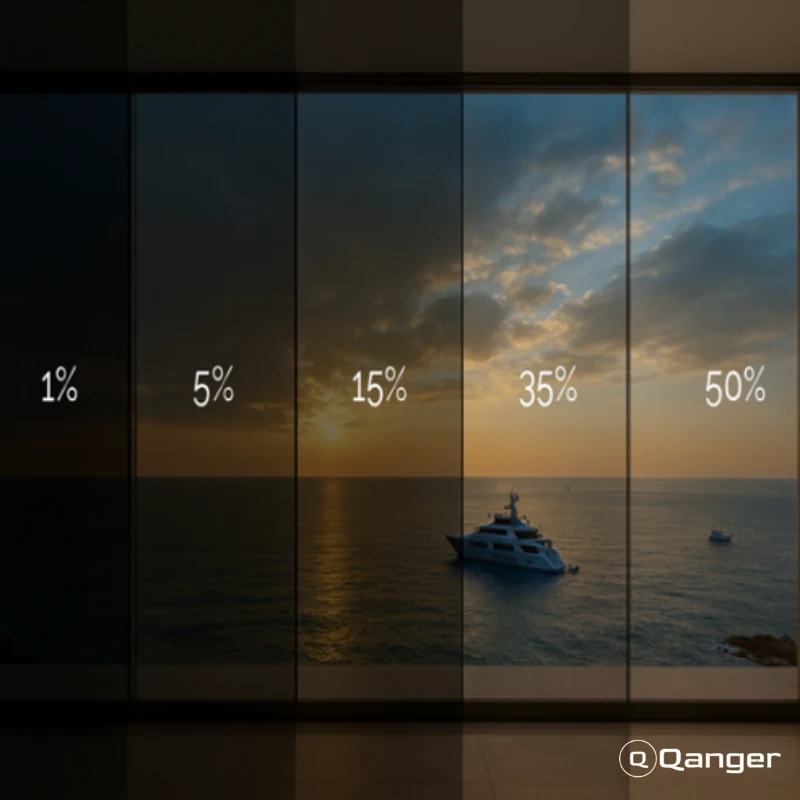 Elige tu nivel de oscuridad (1%, 5%, 15%, 35%, 50%) y disfruta de privacidad, frescura y elegancia.
